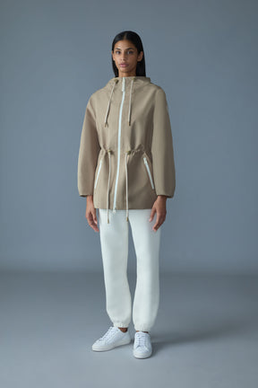 Water-resistant zipper at center front and pockets
