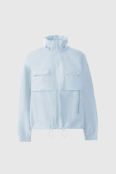 DEVORAH is a lightweight ripstop rain jacket made from recycled materials with seam-sealed construction for windy and rainy days. Water-resistant zippers, hidden hood inside the collar, and rain shedder at front and back provide extra protection for the elements. Adjustable bungee hem for a customizable fit and dual patch pockets at the chest for functionality. Rain or shine, a stylish outerwear piece.