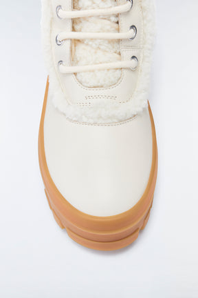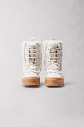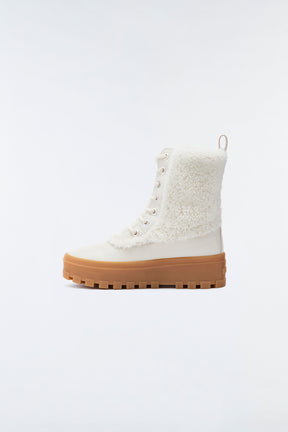 HERO-WSH is a shearling-lined lace-up winter boot for women handcrafted with a shearling shell for superior warmth. A waterproof membrane and signature rubber lug tread ensure traction and protection in the coldest temperatures. A stylish staple boot for winterproof utility.