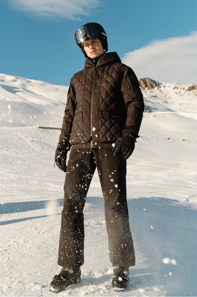 Pour les hommes, le modulaire mène. Les manteaux de ski techniques 3-en-1 HOLLIS et FROST sont le point d’ancrage de la collection : des manteaux utilitaires haute performance dans des tons de bleu vif et à motif camouflage inspirés du look de ski classique. Conçus pour les exigences en hauteur, ils présentent des doublures isolantes amovibles et des tissus aérodynamiques extensibles quatre sens parfaitement adaptés à la vitesse et au froid extrême.