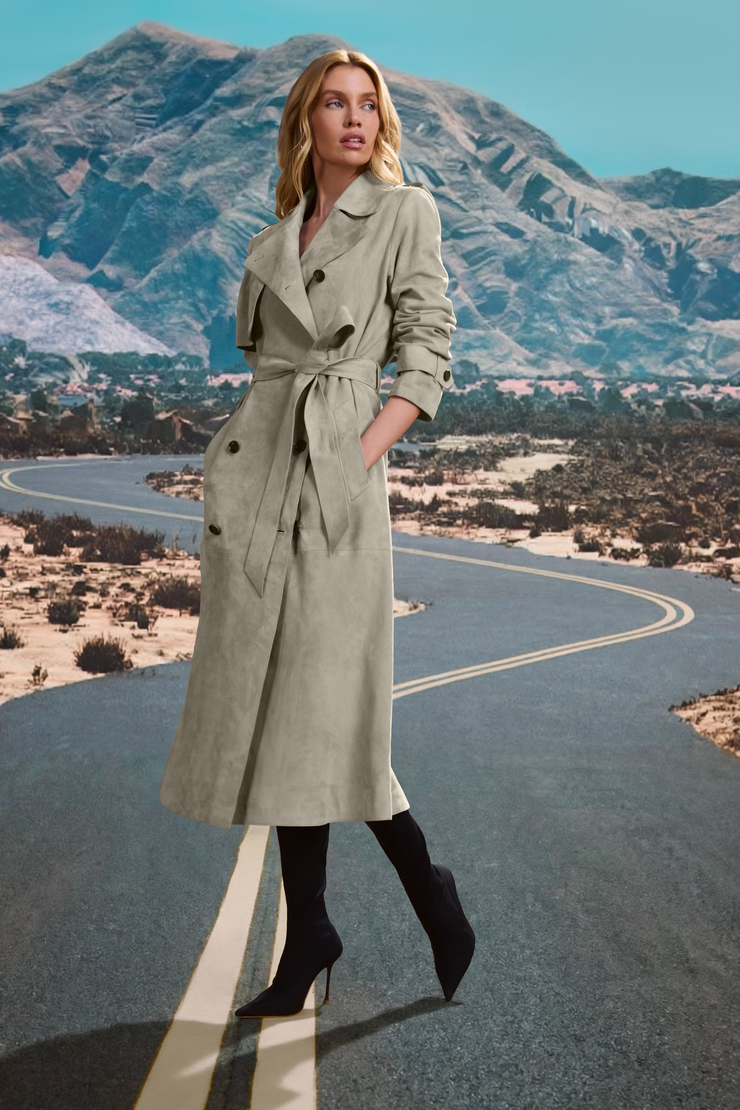 Au cœur de la collection se trouve un système de matériaux conçu pour offrir des performances tout au long de l'année. Des laines double face légères et des cuirs imprimés serpent découpés au laser constituent la base, complétée par de nouvelles finitions en daim de chèvre et agneau et des cotons brossés sur les trenchs longs et les essentiels du quotidien. Une isolation ultra-légère et durable est introduite sur les silhouettes clés de transition, renforçant la chaleur sans alourdir. Les vêtements de pluie suivent avec quatre nouvelles fabrications, intégrant une construction améliorée à coutures étanches et des coques imprimées ripstop.