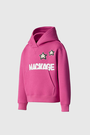 Le chandail à capuchon en jersey double face ultra-doux pour tout-petits DRU-TNV présente une poche kangourou classique. Avec sa silhouette décontractée parfaite pour les looks à superposition, il est orné de motifs brodés à la poitrine et d'un logo imprimé MACKAGE à l'avant. Des poignets et un ourlet en tricot à côtes ajoutent au confort de ce haut. L'essentiel intérieur-extérieur en toute saison pour les petits explorateurs.