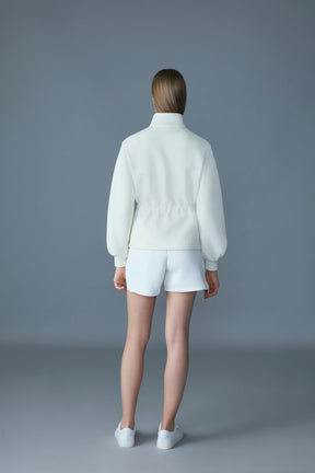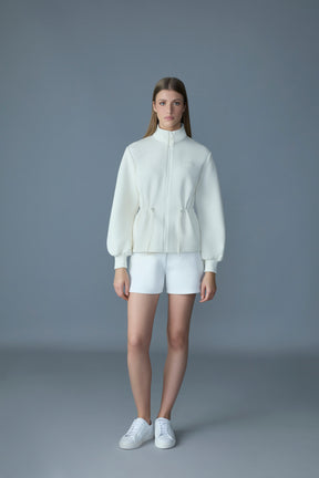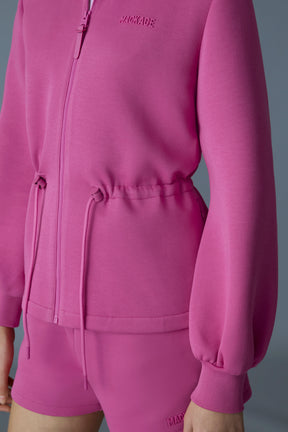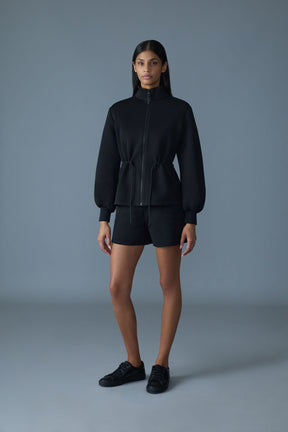 Le manteau à fermeture éclair intégrale FINOLA est confectionné dans un jersey double face. Doté d'un col montant et d'un cordon coulissant ajustable à la taille, il offre un confort inégalé et un style unique. Les manches ballons ajoutent une touche moderne, alors que des détails fonctionnels comme la poche prise dans une couture et le logo MACKAGE sur la poitrine complètent le look. Idéal pour les superpositions et la transition entre les saisons, ce manteau allie design contemporain et fonctionnalités pratiques.
