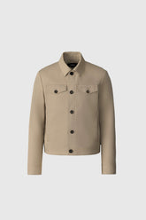 NASH-CO is a regular fit trucker jacket crafted from cotton twill fabric. Chest pockets with flaps and welt pockets adorn the front of the jacket for utility and style. The adjustable sleeve cuffs with horn buttons and signature MACKAGE embroidery add refined details. Unlined for optimal drape and machine washable for easy, everyday wear.