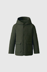 SPENCER is a light-down jacket for kids with a 2-way stretch water-repellent shell. Vertical quilting throughout creates a non-burdensome down armor to the cold and enables the garment to move with the wearer. Side vents with snaps, the high-low hemline, and binding throughout add standout detailing. A modern all-season quilted layer with technical performance.